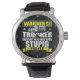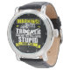 This bold wall clock serves as a clear warning from a no-nonsense truck driver. Against a black background with a yellow rim and distressed yellow accents, it features a semi-truck graphic and the impactful text: "WARNING! THIS TRUCKER DOES NOT PLAY WELL WITH STUPID PEOPLE". It's a humorous yet firm statement, perfect for a driver who values straightforwardness on and off the road. The design tool can also be used to add custom text if you want your name or company on this clock. You can customize the color of the frame to any color you desire by going into the design tool.