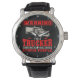 This bold wall clock serves as a clear warning from a no-nonsense truck driver. Against a black background with a red rim, it features a semi-truck and the direct message: "WARNING THIS TRUCKER DOES NOT PLAY WELL WITH STUPID PEOPLE". It's a straightforward and humorous statement for any trucker who values efficiency and intelligence on the road. The design tool can also be used to add custom text if you want your name or company on this clock. You can customize the color of the frame to any color you desire by going into the design tool.