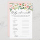 Voeg deze leuke en feestelijke aanpasbare game baby shower toe aan uw evenement. Hij heeft een waterverf bloemkool met roze en witte rozen, dahlias en pinda's met groene accenten. Pas dit bloemetjesspel aan door je eigen details toe te voegen. Deze florale baby shower trivia is perfect voor de baby showers van de lente en de tuin.