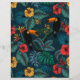 tropisch naadloos patroon met tropische bladeren en bloemen en 2 trekvogels.