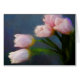Impressionistische interpretatie van roze tulpen op een middernacht blauwe achtergrond.