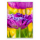 Kleurrijke violette, paarse, roze tulpen op een bloembed. Vrijwel alle regenboogkleuren cadeau. Heldere en positieve florale scène. Macrofotografie.
