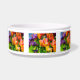 Kleurrijke violette, paarse, roze tulpen op een bloembed. Vrijwel alle regenboogkleuren cadeau. Heldere en positieve florale scène. Pet bowl.