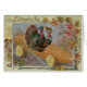 Dit schattige kalkoenpaar is op weg naar de Thanksgiving. Deze Thanksgiving print toont twee kalkoenen in een maïsauto. Fall Leaves aan de grens.