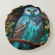 Turkoois uil rond kussen