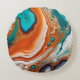 Turquoise blauw, roest en goudverf abstract rond kussen