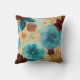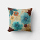 Turquoise blauw, rood, roest en bronzen bloemen kussen