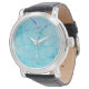 Turquoise Blauwgroen Marmeren Verf Abstracte Water Horloge