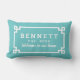 Het stijlvolle lumbale kussen is voorzien van een wit Grieks, geometrisch grensontwerp en een monogram dat gepersonaliseerd kan worden met een getrouwde of familienaam, een datum die is vastgesteld voor het jaar dat het lijst is gehuwd of het jaar dat het eerste kind is geboren. Pas de turquoise/aqua blue achtergrond aan om met uw openluchtdecor te coördineren.