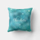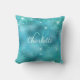 Turquoise blue oceaanmetallisch glittermonogram kussen