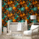 Turquoise Brown Abstract Fractal Pattern Behang