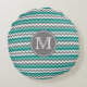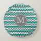 Turquoise en Gray Chevron Zigzag Monogram Rond Kussen