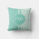 Bekroond design turquoise en White Polka Dot Monogram Kussen. Personaliseer met uw initiaal(s).