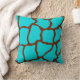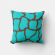 Een heldere turquoise en bruine giraffe print siert dit kussen. Het ontwerp is van originele kunst.