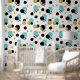 Dit leuke behang beschikt over polka stippen in turquoise, goud, zwart en strepen. De perfecte aanvulling op uw interieur.