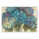 © Albena Hristova / Wilde Apple. Een blauw boeket met decoratieve bloemen. De bloemen bevinden zich in schoppen van paars en wit met groene bladeren en stengels.