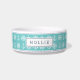 Voor de meest stijlvolle kusthuisdieren kenmerkt deze schattige gepersonaliseerde kom voor honden of katten een patroon van witte scheepswielen en ankers op een turquoise blauwgroen achtergrond met blauw gestreepte inkepingen boven en onder. Pas dit coole nautische ontwerp aan met de naam van uw huisdier.