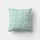 Turquoise Grieks sleutelkussen in de openlucht. Gemaakt in de VS. Levendig afdrukken van hoge kwaliteit. UV- en mildew-resistente tuin- of terrasdieren met moderne patronen in zomerkleuren. 16 of 20 inch vierkant of 13 inch rechthoekig, 21 inch. Invoegen inbegrepen. (Voor het matchen van binnenshuis werpen kussens voor de bank of de bank, enkel uitgezochte katoen of polyester van de Stof tabel).