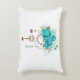 Antiek gouden sleutel met trendy turquoise-rozen versierd met bladeren van wit goud, roze en blauwe kralen. Fashionable kleur. Turquoise rozen. Wit goud. Blauwe tang.