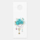 Antiek gouden sleutel met trendy turquoise-rozen versierd met bladeren van wit goud, roze en blauwe kralen. Fashionable kleur. Turquoise rozen. Wit goud. Blauwe tang.