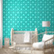 Deze peel en stick wallpaper beschikt over een boeiend geometrisch ontwerp dat moeiteloos stijl en functionaliteit combineert. Het kleurenpalet is voorzien van een verfrissende mix van turkoois, zwart en wit. De turkoois voegt levendigheid toe, terwijl het wit het schoon en modern houdt. Het behang toont een ingewikkeld mozaïekpatroon dat is samengesteld uit in elkaar grijpende vormen. Elke vorm lijkt op een ster of bloem, straalt lijnen naar buiten uit. Het herhalende geometrische motief creëer is visueel belang zonder de ruimte te overweldigen. De scherpe lijnen en precieze hoeken geven dit behang een eigentijdse rand. Het zich herhalende patroon bereikt zowel symmetrie als dynamiek, waardoor het geschikt is voor verschillende kameresthetiek. Gemakkelijk aan te brengen en te verwijderen, is dit schil en stokbehang perfect voor accentmuren, thuiskantoren of creatieve boeken.