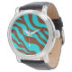 Een fel turquoise en donkerbruine zebraafdruk versiert dit stijlvolle horloge. Het ontwerp komt uit de oorspronkelijke kunst.