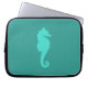 De vorm van een zee paard in turquoise op een mooie zee groene achtergrond.