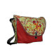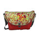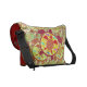Zee schildpad in zee schildpad in rode / oranje / gele kleuren. Zee schildpad met een ontwerp van een kleinere schildpad en meerdere kleurrijke vissen tegen een gevlekte achtergrond. Zee schildpadkunst. Deze messengertas heeft het design aan de buitenkant.