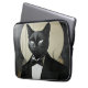 Een suave smoking kat illustratie op een laptop mouw. Een stijlvolle look.