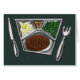 Het diner op tv heeft bevroren meel gekookt (vleermeel, gemashte aardappelen, erwten en frambozentaart) in een zilverlade met een zilvermes en een sporenkunst.