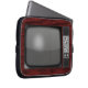 Retro tv-set met chroomknoppen en houten hoesje.