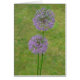 Twee mooie allium staat hoog in de tuin van mijn moeder. De paars en groenen op deze foto maken een heel verzachtend afbeelding. Perfect als een sympathie, goed worden, en alle gelegenheidskaarten.