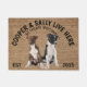 Introductie van onze heerlijke Coir Deurmat met twee schattige Border Collies naast elkaar zitten, klaar om u en al uw harige vrienden met open poten te verwelkomen! Gemaakt met liefde en aandacht voor detail, is deze deurmat niet alleen een functionele toevoeging aan uw deur, maar ook een grillig statement stuk dat een glimlach op je gezicht zal brengen elke keer dat je je huis binnenkomt. Deze welkomstmat kan worden gepersonaliseerd met de naam van uw hond, de slogan kan ook worden gewijzigd of u kunt een afbeelding van uw eigen hond gebruiken (zorg ervoor dat het doorzichtig is). Tekst luidt: Cooper & Sally Live Here.... Alle traktaties welkom. Maakt een geweldig cadeau voor een housewarming party, feestdagen, hondenliefhebbers en de meeste gelegenheden.