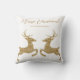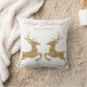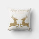 Destei's springherten in digitaal gecreëerde faux gouden gele glittertextuur. De twee herten staan tegenover elkaar en er zijn twee personalizable tekstgebieden boven hen. Er is een personaliseerbaar tekstgebied voor een familienaam samen met tekst die nu luidt: "Vrolijk Kerstfeest!". GELIEVE OPMERKING: het ontwerp is een digitaal gemaakt afbeelding dat op het product wordt afgedrukt.