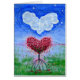 Een acrylschilderij met 2 harten, een gemaakt van een wolk, een andere van rode bladeren, geworteld in de grond. Open uw interpretatie. Andinaal schilderij gedaan in acrylverf.