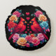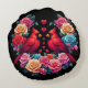 Twee kardinalen met kleurrijke Rozen en harten Rond Kussen