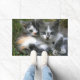 De deurmat heeft een schattig afbeelding van twee kittens erop.