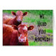 Een paar merkwaardige bruine koeien die samen op een weide staan, digitaal filter aangebracht om op een olieverfschilderij te lijken met canvastextuur en detail van de borstelslag. Ik feliciteer de gelukkige persoon op een nieuw huis met deze schattige gekke koeienkaart.
