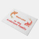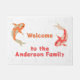 Deurmat motief met een vis thema. Tekening van twee Koi in sinaasappel en rood. Voeg je familienaam toe en maak er een blikvanger van in je entree.