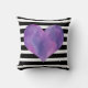 Een tweezijdige hartkussen. Een zijde heeft een modern gestreept zwart-wit met een paars waterverf hart. De andere kant is een stevige zwarte met het waterverf paarse hart. Zie alle foto's.