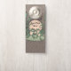 Deze papieren deurhanger is zwart-wit met twee schattige kikkers die ruzie maken terwijl ze op een groen leliekussen staan onder een volle witte maan omringd door hoge planten. Pas jouw tekst aan de voor- en achterkant aan met de sjabloon.