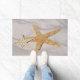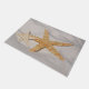Een kleine omgekeerde zeester legt in het zand met een grote zeester.