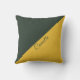 Een kleurenblokkkussen in tweekleurige kleuren: bos Groen en goud met een kalligrafische voornaam voor een beter cadeau!