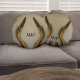 Het is een mooi kussen met het levenswiel er op. Je ziet dat het een afbeelding is van een tempeldeur of wand, het hout is herkenbaar. Het past geweldig in ons interieur: een beetje Zen, maar wel kleurig. Mooie kleuren, zoals op de afbeelding.
