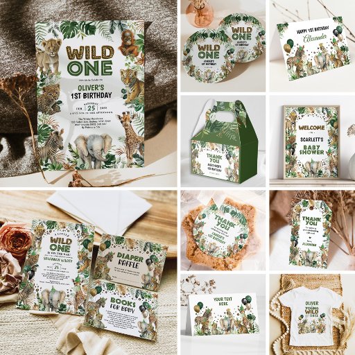 Met een grillig ontwerp dat perfect de geest van het oerwoud vastlegt, zullen deze feestservetten zeker indruk maken op uw gasten. Het schattige ontwerp bevat een verscheidenheid aan wilde dieren, waaronder leeuwen, zebra's en olifanten, omgeven door weelderige oerwouden tropische bladeren en kleurrijke ballonnen in de tinten groen, zwart en goud. De luipaardprint voegt een vleugje wildheid en plezier toe aan het ontwerp, terwijl de speelse typografie de toon zet voor een vrolijk feest.