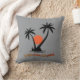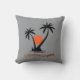 Een kussen met een levendige oranje zon en twee zwarte palmbomen, met de zin "Break from the Grind" gecentreerd rond het afbeelding. Het ontwerp roept afbeeldingen op van een tropisch paradijs en biedt een gevoel van ontspanning en ontsnapping.