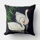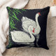 Gooi kussen in een Japanse illustratie op twee zwemzwanen en weerspiegelde een zwembad in een dramatisch wit op zwarte samenstelling