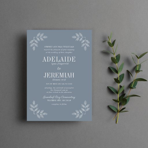 Deze prachtig eenvoudige en toch elegante trouwkaart heeft een kader van getekende bladeren rondom de tekst van de uitnodiging. Neem contact met me op als u hulp wilt bij het aanpassen van het tekstgedeelte.
