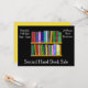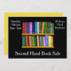 Een uitnodigingskaart die geschikt is voor een tweedehands boekverkoop met schattige en kleurrijke boeken op een boekenplank en aanpasbare tekst.