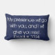 Deze kussen zijn gemaakt op blauwe textuur met bijbelvers "Mijn aanwezigheid gaat met je mee, en ik zal je rust geven. Exodus 33:14"